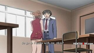 in the fake hostel, the student's excitement builds as he finishes in her mouth