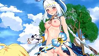 Shenhe, Lumine, Miko Yae, Raiden Shogun in Wild Futanari Action