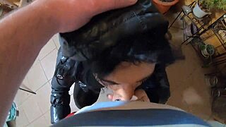 i gave blowjob to father in law in bathroom and he cumshot on me, oops