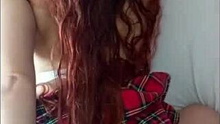 Adorable yanks redhead ruby woods shows cute small tits and shaved pussy in close up horny masturbation with hip humping orgasm