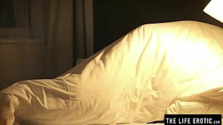 restless teen sneaks clit rubs under covers with flashlight glow at night