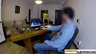 ebony teen clarice spits on huge cock post casting