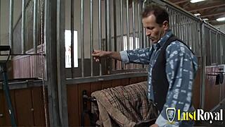 horse stable turns sexy for lesbian brunettes with clit licking fun