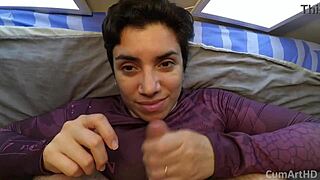 wasted cumshot after quickie bed blowjob handjob pov