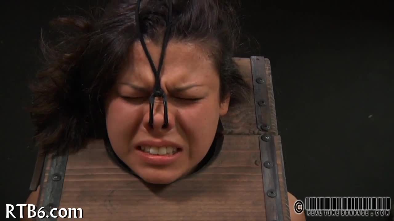 Girl strips inside the cage, clothes ripping off