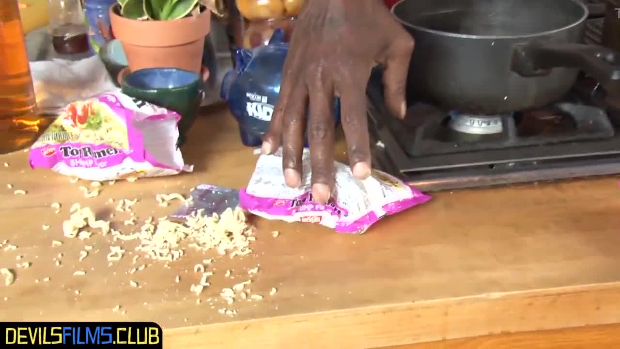 Африканска мюсюлманка тийн 18+ ебана от голям черен кур в кухнята с мокри путки