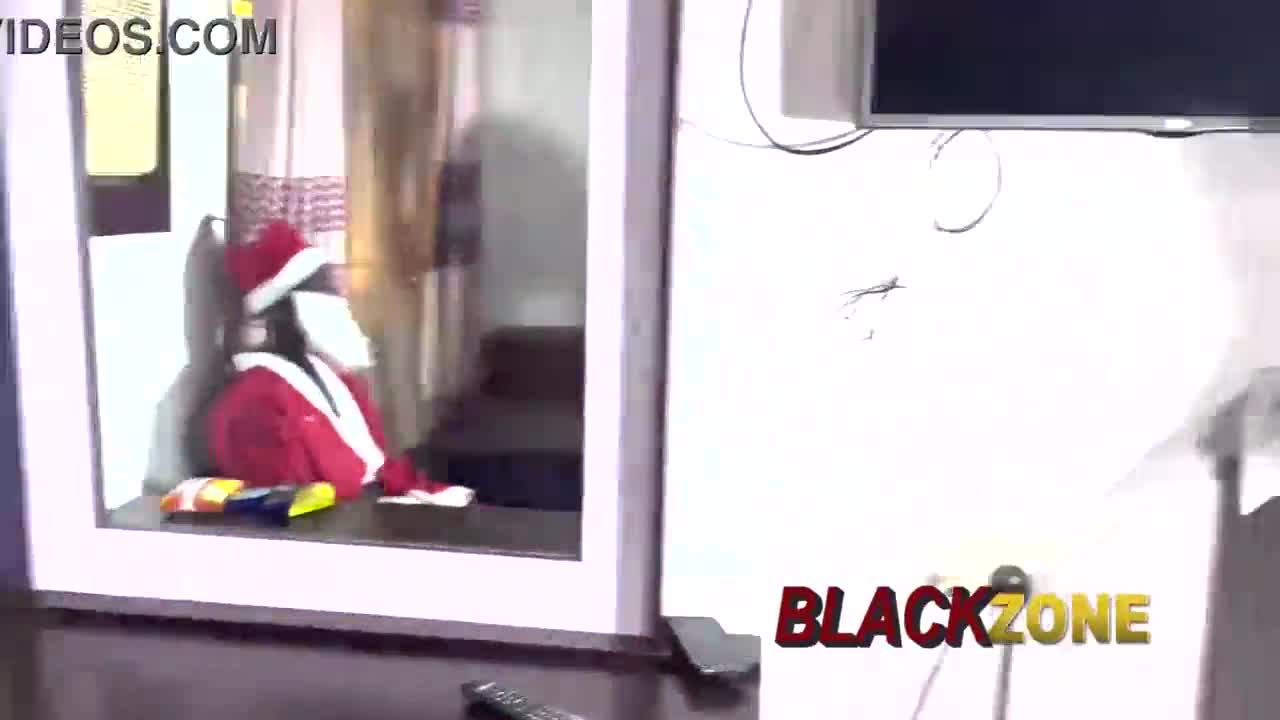 Christmas gift from santa with ebony babe in bedroom casting