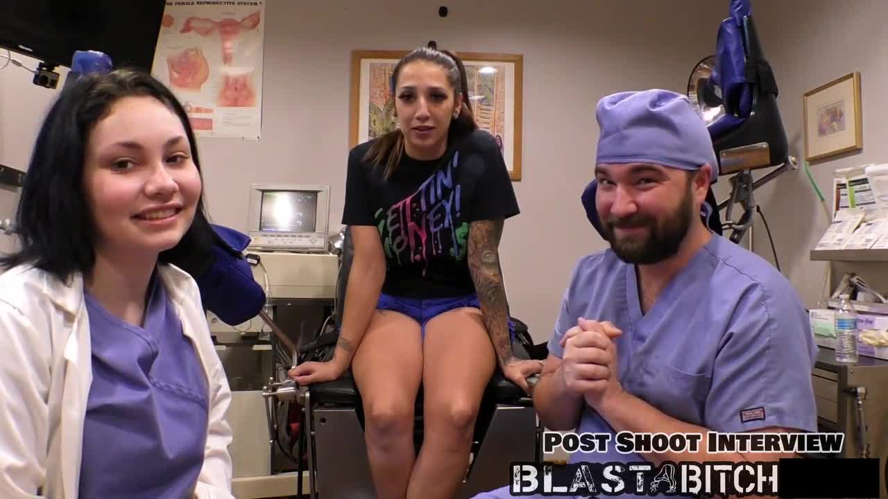 stacy shepard's pussy blasted with cum after nurse blowjob in pov. gloves on, vibrator spreads her wide