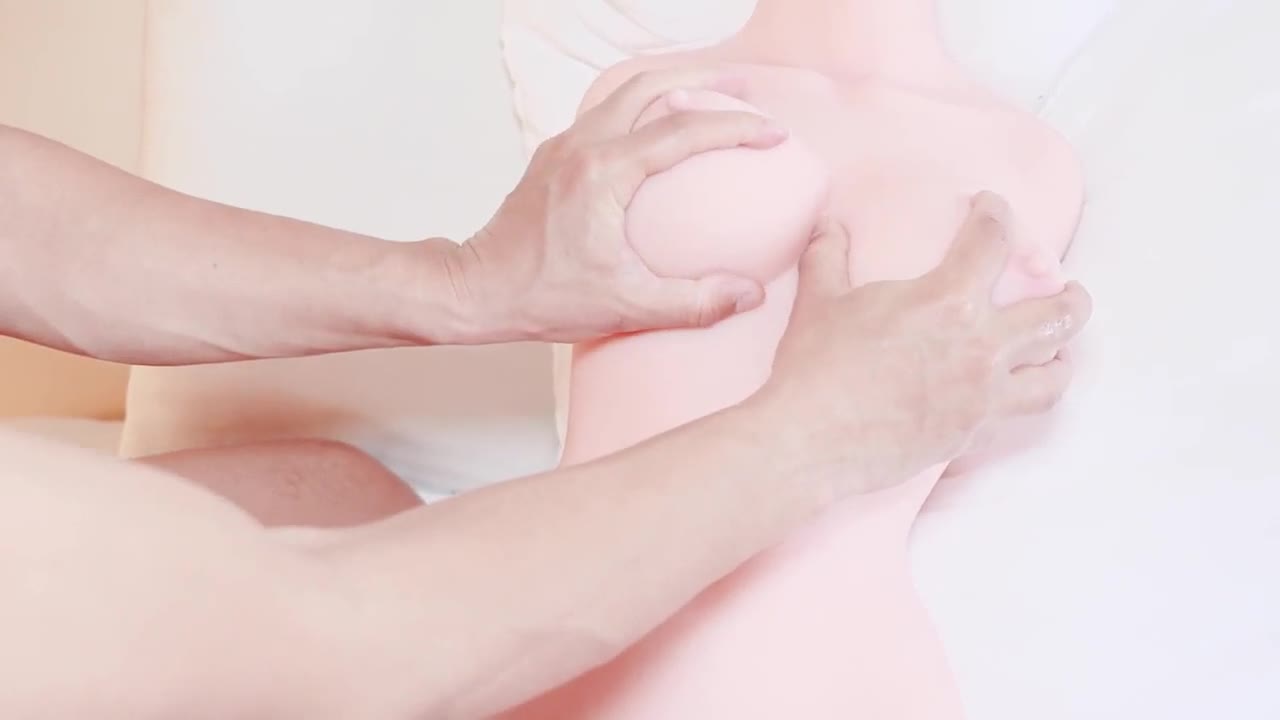 Doll girl tries out sex for the first time and gently caresses her body in this amateur homemade video with a big cock