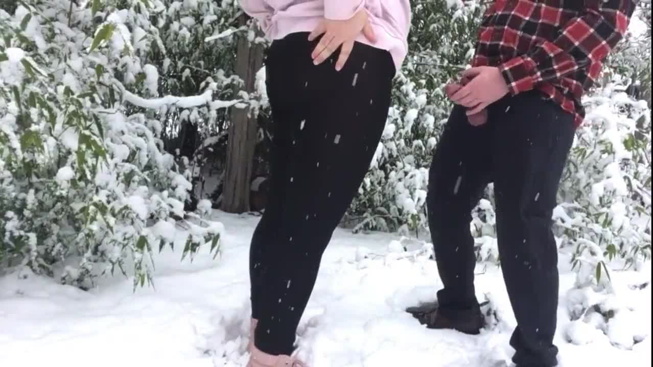 I love fucking my fat ass wife outdoors in snow with her leggings on