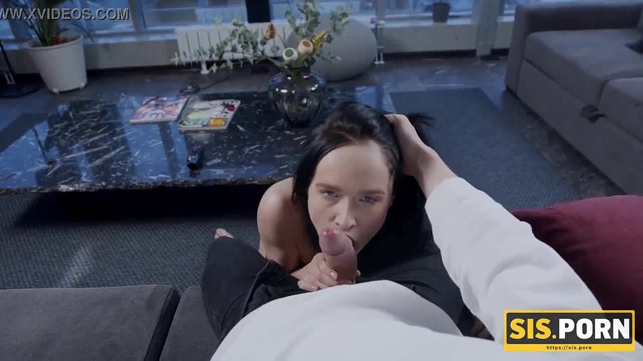 Teen sneaks to suck stepbro's cock then fucks hard at Christmas