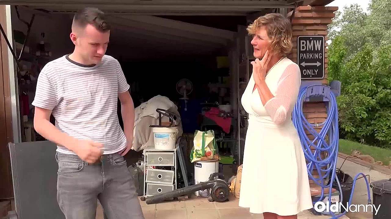 Oldnanny баба изкушава жребче с лигавене путка в гаража